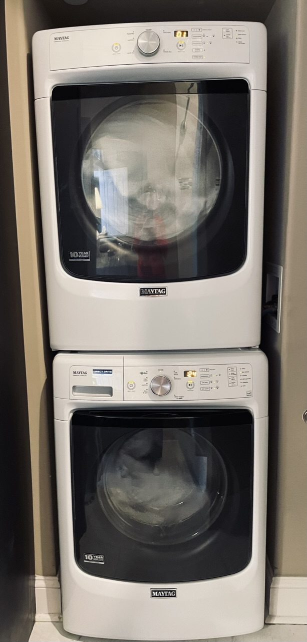 The primary bedroom includes a king size bed and walk in closet. The second bedroom includes 2 twin beds and closet. The living room includes a sectional couch that transitions into a queen size bed. There is 1 large full bath in the property that includes a tub/shower as well as full sized washer & dryer.